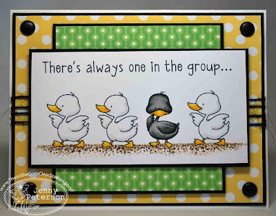 Here first card using Jungle Out There was for our recent green on green challenge. I love her coloring, and the different papers and textures she has used. It pulls together this SUPER cute creation so well! And, would you LOOK at that grass...so talented!
